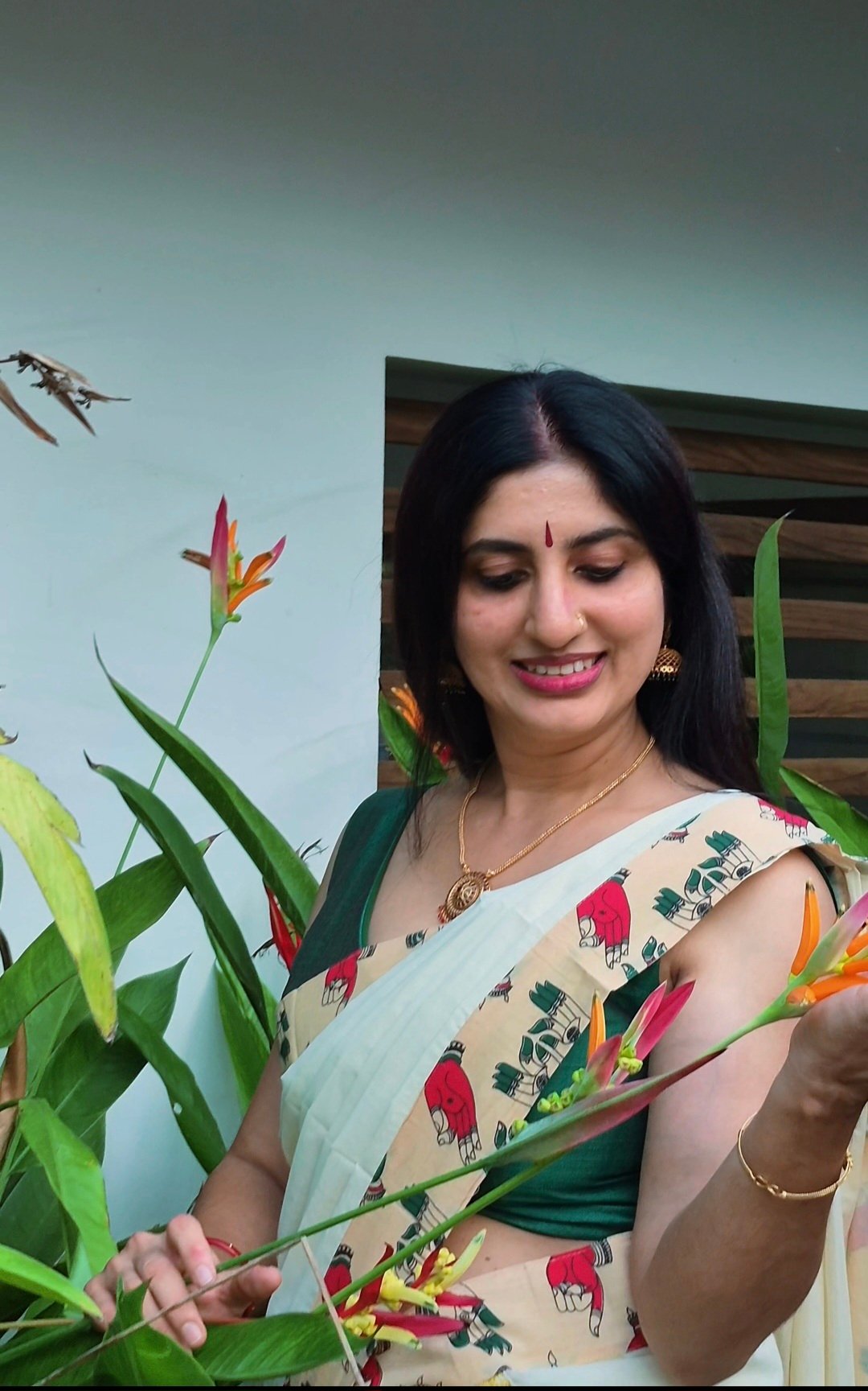 Powerloom Cotton set mundu with kalamkari patch work on borders.